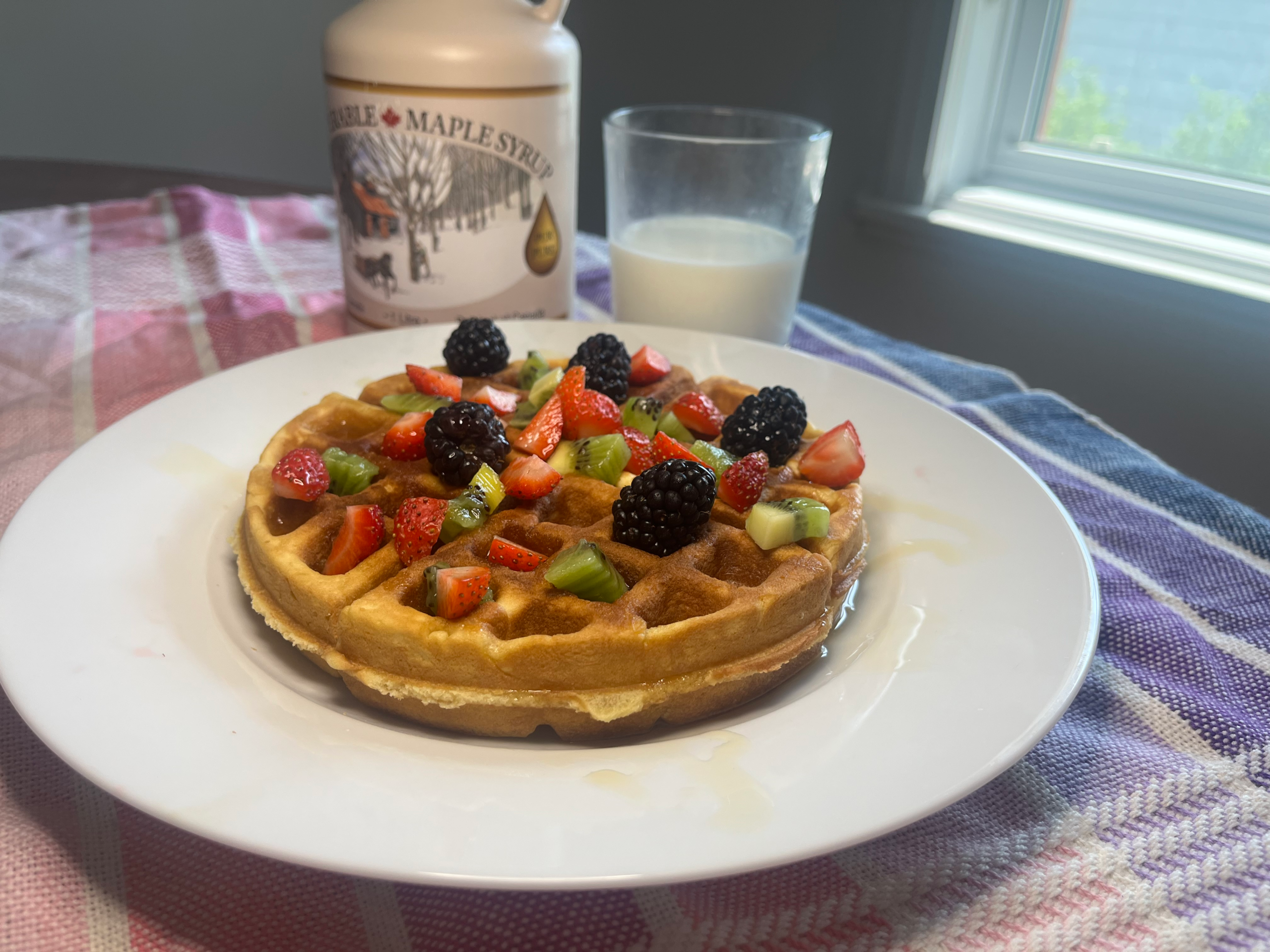 - Servir les gaufres chaudes, avec du sirop et des petits fruits.