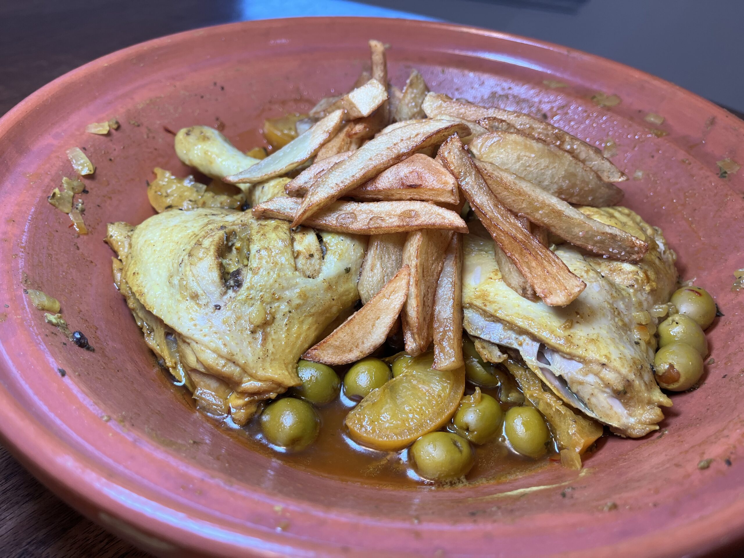 La mère de mon conjoint est algérienne et elle lui a beaucoup préparé de plats algérien dans son enfance. Souvent, il me demande des recettes de tagine et il m’a même offert un très beau Tajine en cadeau (j’imagine que ce n’était pas un cadeau tout à fait désinteressé hihi ). Je vous laisse un lien pour vous procurer le même que moi !Donc, j'ai appris à faire du tagine de poulet citron confit et olives (moi qui rafole les olives, j’adore ce plat autant que mon conjoint 😉 ) On peut manger ce tajine avec un couscous ou avec des frites maison!La petite particularité de cette recette est que ça vous prendra une épice, très utilisée dans la cuisine maghrébine, qui s'appelle le ras el hanout. Cette épice se trouve difficilement en épicerie. Vous pouvez l'acheter en ligne sur Amazon (j'ai acheté le mien en ligne). Vous pouvez aussi faire un mélange maison de ras el hanout. Je vais vous laisser une recette maison de cette épice que vous pouvez faire avec les épices que vous avez chez vous. Si vous n'avez pas toutes les épices indiqués, faites simplement sans, car, de toute façon, ce mélange d'épices est fait différemment d'un magasin à un autre dans les pays du Maghreb. Donc, voici les quantités pour chaque épices pour faire un mélange de ras el hanout maison:-1 cuillère à thé de sel-1 cuillère à thé de cumin moulu-1 cuillère à thé de gingembre en poudre-1 cuillère à thé de curcuma-¾ cuillère à thé de cannelle moulu-¾ cuillère à thé de poivre moulu-½ cuillère à thé de coriandre moulu-½ cuillère à thé de piment de Cayenne-½ cuillère à thé d'épices de la Jamaïque-½ cuillère à thé de muscade en poudre-¼ cuillère à thé de clous de girofle mouluAutre particularité de cette recette est qu’il vous faudra du citron confit. Vous aurez peut -être de la difficulté a en trouver dans votre épicerie. J’ai acheté le mien en ligne, sur Amazon. Il est possible de faire son propre citron confit. Toutefois, il faut faire son propre cannage de citron conflit et attendre au moins 4 semaines avant que ce soit prêt…Ce n'est pas que c'est compliqué à faire soi même par contre ! Voici la recette de citron confit : -Mettre 6 citrons dans un récipient et les recouvrir d'eau.-Laisser tremper 24 heures.-Couper vos citrons en quatre en laissant le bas du fruit fermé. -Mettre les citrons dans une conserve, en les serrant les uns sur les autres. -Ajouter ¼ de tasse de gros sel.-Fermer la conserve et mettre à l'abri de la lumière pour au moins quatre semaines avant de l'utiliser.